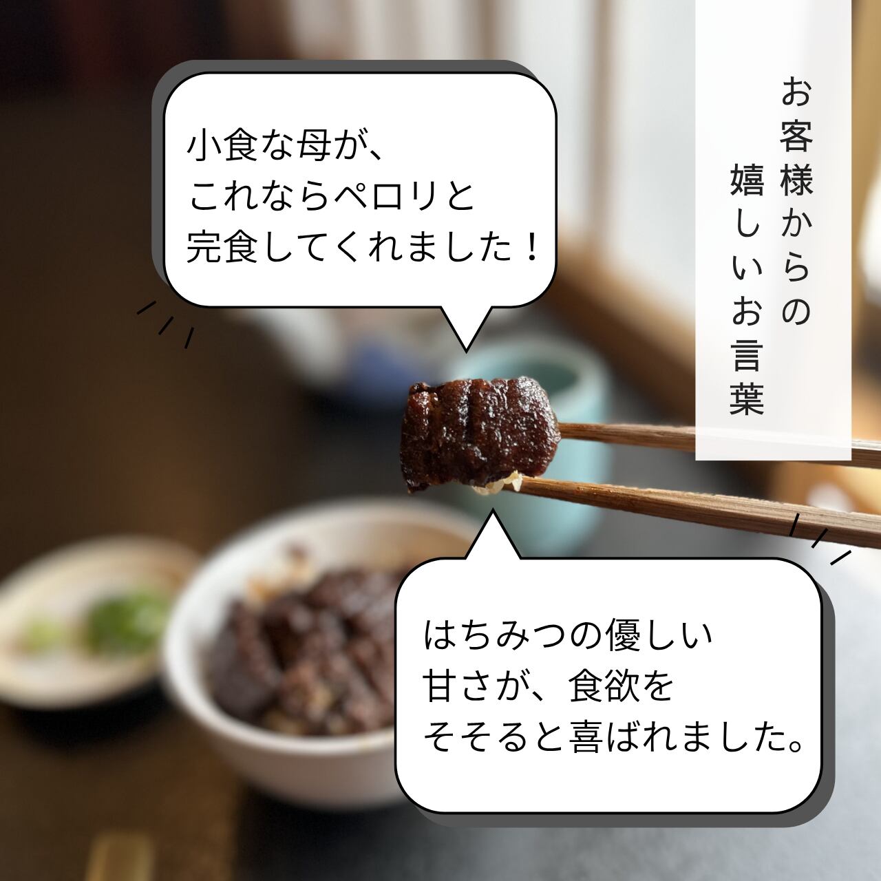 驚きの柔らかさ:真空パックで味が染み込み、身もふっくら。食が細くなったお母様も「これなら完食!」と喜ばれています。